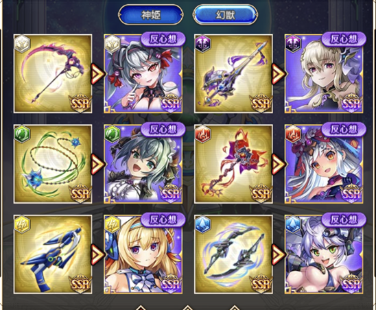 - 新たに反想神姫などが追加されピックアップガチャが開催される場合、過去の反想神姫などが全て含まれる(ピックアップはされない)