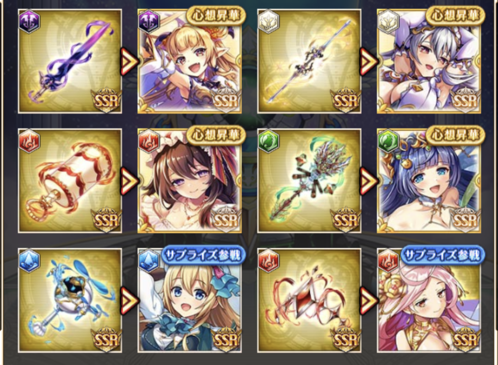 - ワンコインガチャなどの目玉として追加される場合がある(その後再び対象から除外)