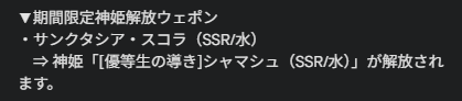 シャマシュとフルーレティは『期間限定神姫』と書かれていましたが、それ以降は『コラボ限定神姫』表記になっています。